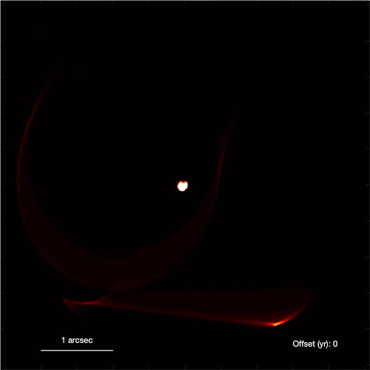 This acceleration turned out to be the one missing element in the models for WR140. Our data did not fit because the expansion speed wasn’t constant: the dust was getting a boost from radiation pressure.