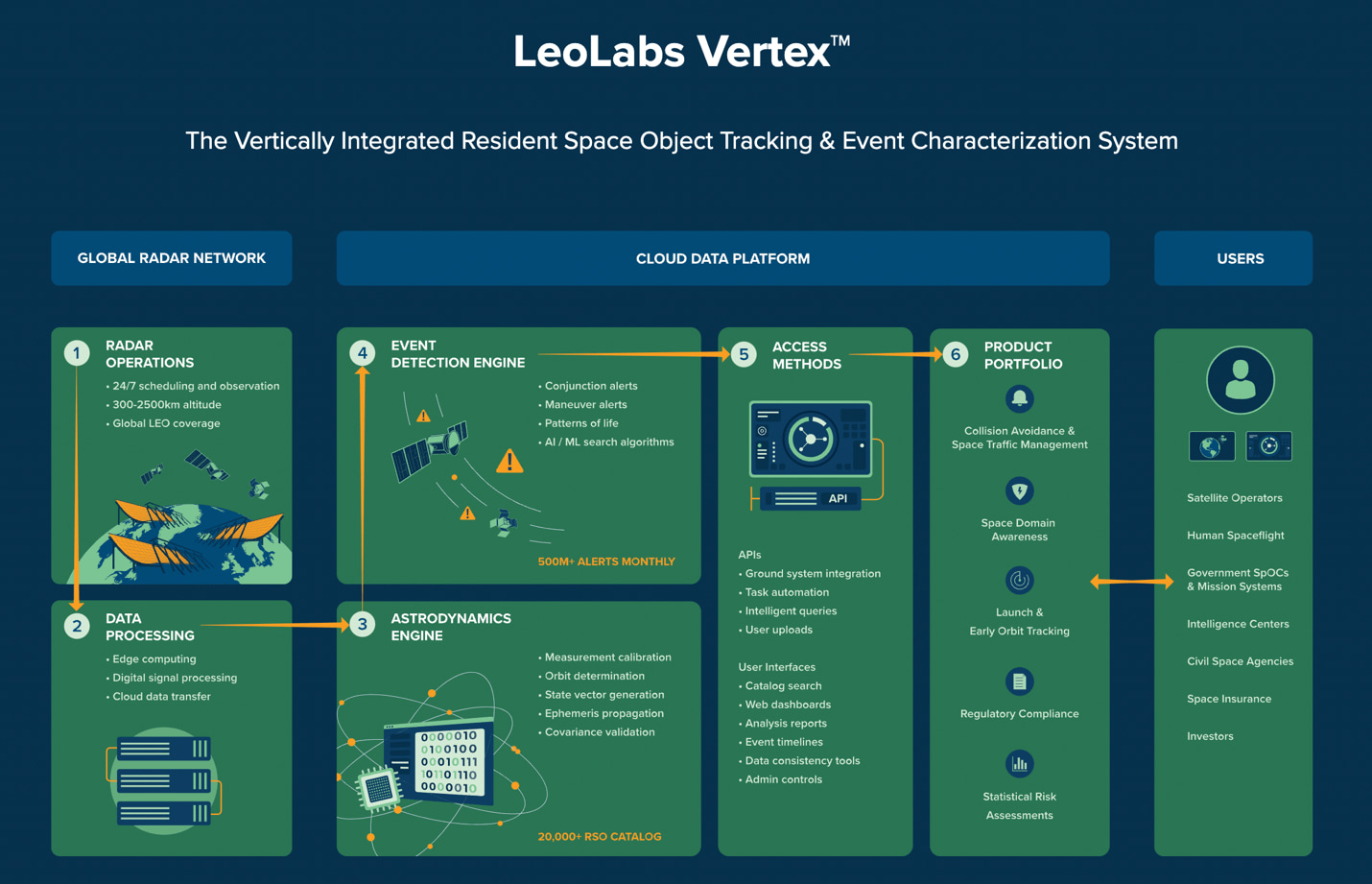 LeoLabs, and its subsidiary, LeoLabs Australia, sit apart from both competitors and existing systems by providing superior information in three critical areas: coverage, speed, and insights. These features are made possible through LeoLabs Vertex™, their vertically integrated space operations system that’s transforming the way satellite operators, commercial enterprises, and federal agencies launch and track missions in LEO.