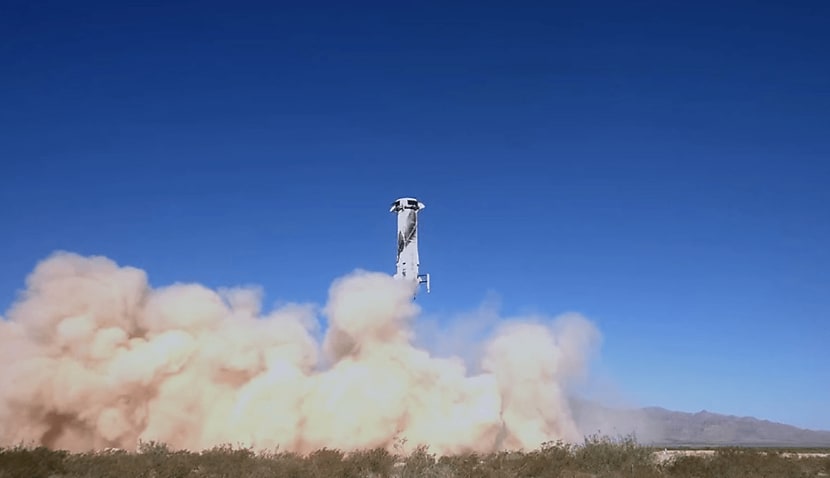 New Shephard blasted off at the company’s Launch Site One in West Texas at 10:35am on Sunday and the mission lasted nine minutes and 53 seconds.